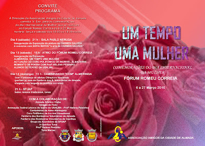A Associação dos Amigos de Almada leva a efeito nos dias 13 e 14 de Março próximos a celebração do Dia Internacional da Mulher, conforme destacado nas imagens junto. Uma palavra de apreço para estes nossos amigos, que tiveram a gentileza de convidar as Cantadeiras da Alma Alentejana para o evento.